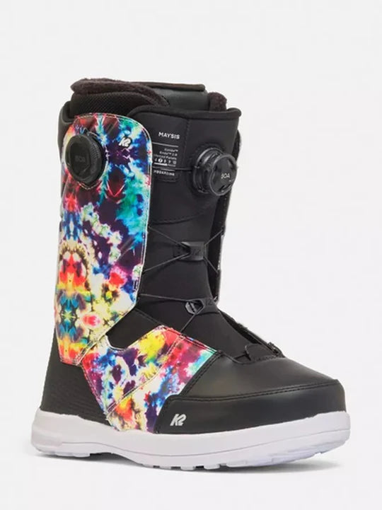 The Maysis is K2’s all-mountain workhorse — designed to deliver a perfect blend of stiffness, comfort, and heel lock for riders who demand performance without pain. It sits squarely in the medium-stiff flex zone, built to crush groomers, side hits, and everything in between, while still being friendly enough for full days on the hill.