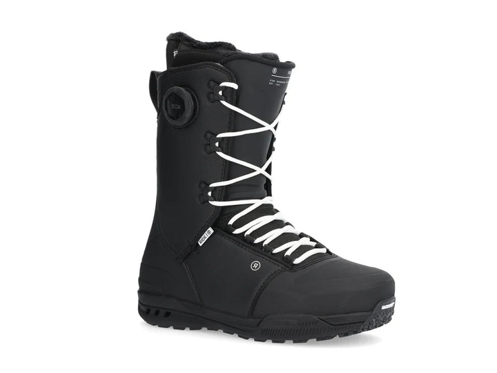 Traditional lacing lets you fine-tune your fit across the whole boot, while Ride’s BOA® Tongue Tied™ harness takes care of internal heel hold, keeping your foot centred and secure. Inside, the Intuition™ Trap Wrap liner hugs your foot with heat-mouldable foam and Black Gold™ mesh that keeps things dry and fresh on long days. Underfoot, the Michelin® Fiberlite sole and +Slime midsole combine lightweight grip and cushioning, helping you stay locked in whether you’re stomping landings or boot-packing back to the top.